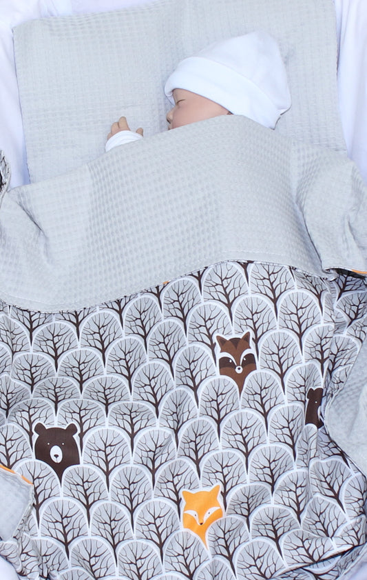 Baby Decke Waffelpiqué / Baumwolle Kuscheldecke - Wald Braun + Grau