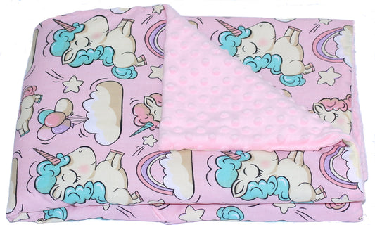 Baby Einschlagdecke MINKY - Einhorn + Rosa- mit Kapuze 85x85cm Babyschale Decke