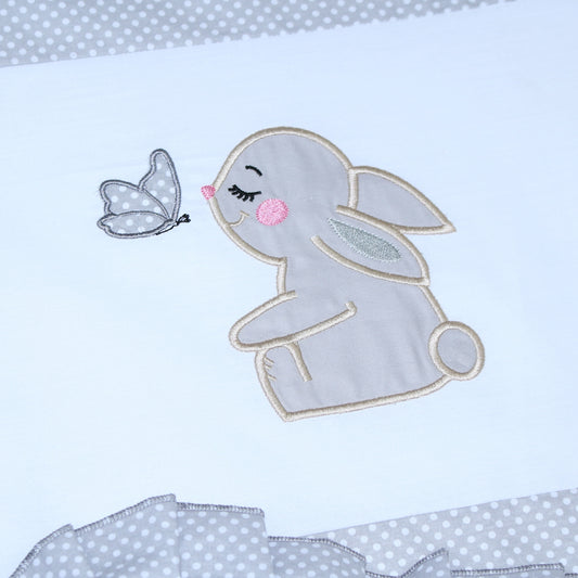 2- 4tlg Kinderwagenset - Hase- Punkten Grau - Bettwäsche für Kinderwagen Bezüge Decke Kissen