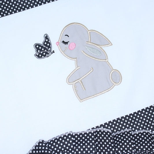 2- 4tlg Kinderwagenset - Hase- Punkten Schwarz - Bettwäsche für Kinderwagen Bezüge Decke Kissen