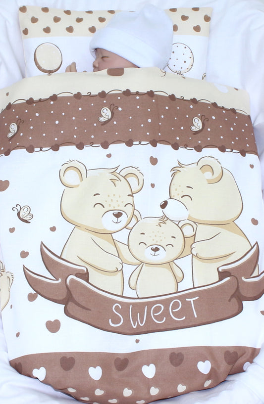 2- 4tlg Kinderwagenset -SWEET Bärchen in Braun- Bettwäsche für Kinderwagen Bezüge Decke Kissen