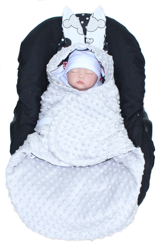 Baby Einschlagdecke MINKY - Minnie + Grau- mit Kapuze 85x85cm Babyschale Decke