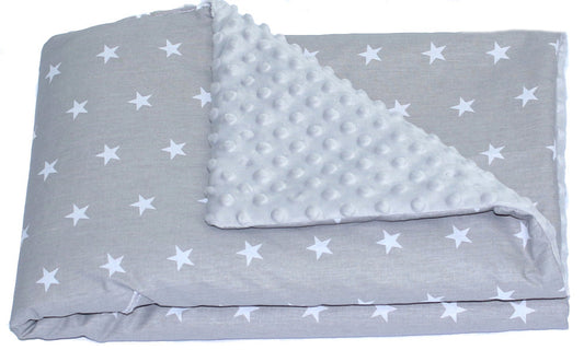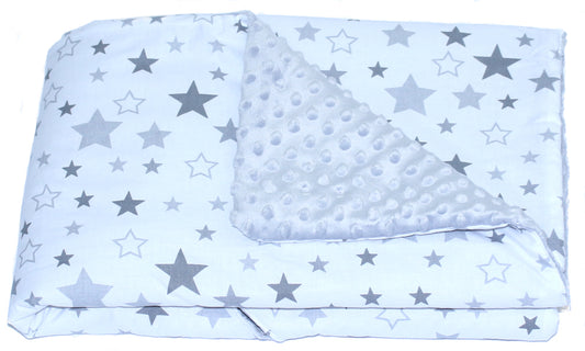 Baby Einschlagdecke MINKY - Sternchen auf Grau + Grau- mit Kapuze 85x85cm Babyschale Decke