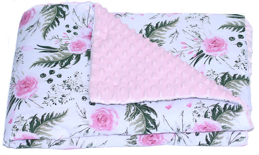 Baby Einschlagdecke MINKY - Flowers + Rosa- mit Kapuze 85x85cm Babyschale Decke