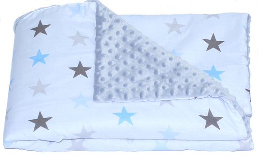 Baby Einschlagdecke MINKY - Star Blau + Grau- mit Kapuze 85x85cm Babyschale Decke