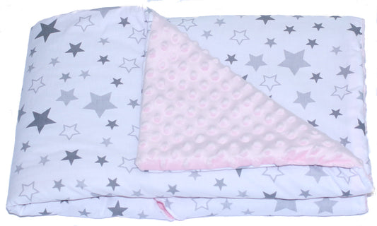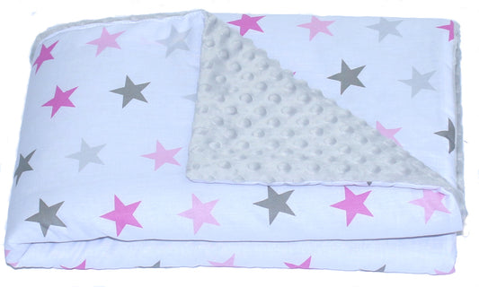 Baby Einschlagdecke MINKY - Star Rosa + Grau- mit Kapuze 85x85cm Babyschale Decke