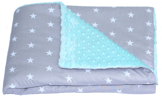 Baby Einschlagdecke MINKY - Star Dunkel + Minze- mit Kapuze 85x85cm Babyschale Decke