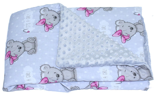Baby Einschlagdecke MINKY - Girl + Grau - mit Kapuze 85x85cm Babyschale Decke