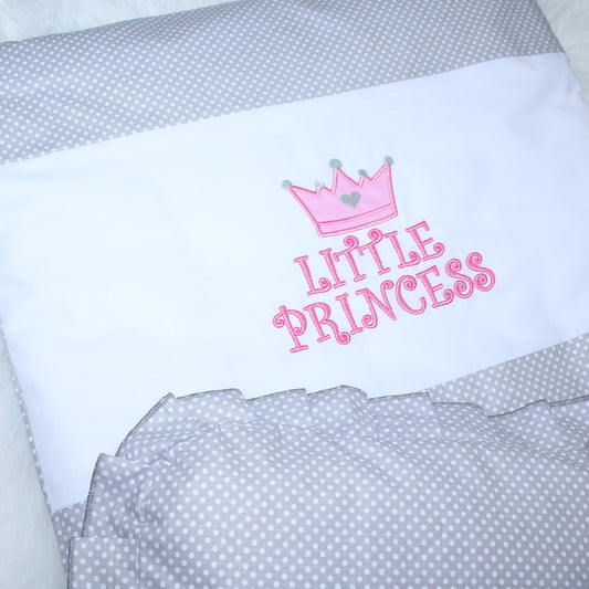2-4 tlg Kinderwagenset - Princess - Punkten Grau - Bettwäsche für Kinderwagen Bezüge Decke Kissen