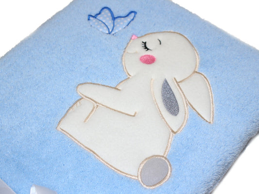 Babydecke mit Namen bestickt -Hase- Blau- Kuscheldecke