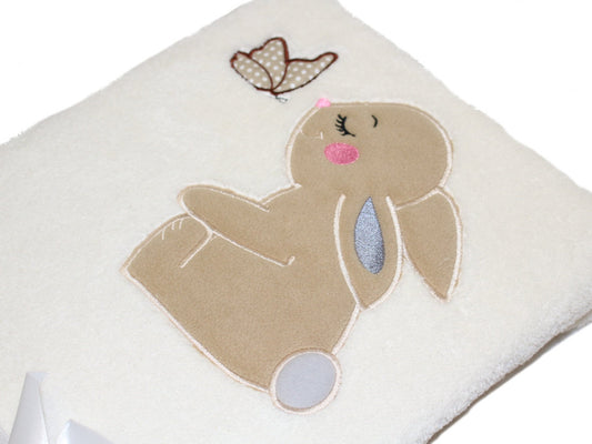 Babydecke mit Namen bestickt -Hase- Creme- Kuscheldecke