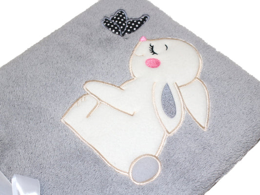 Babydecke mit Namen bestickt -Hase- Grau- Kuscheldecke