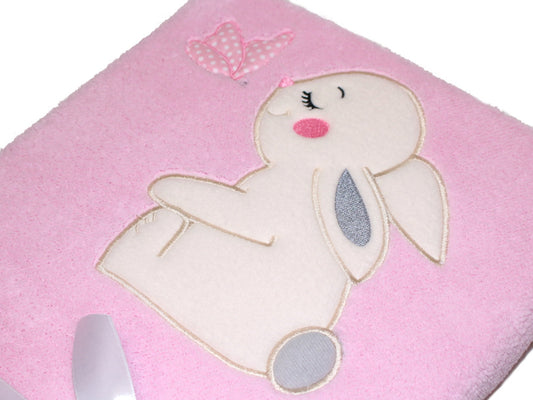 Babydecke mit Namen bestickt -Hase- Rosa- Kuscheldecke