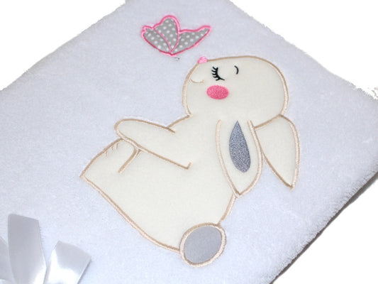Babydecke mit Namen bestickt -Hase- Weiß- Kuscheldecke
