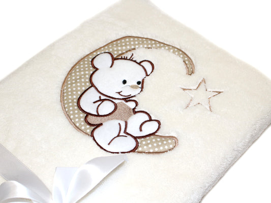 Babydecke mit Namen bestickt -Bär auf dem Mond- Creme- Kuscheldecke