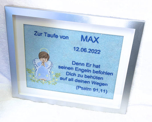 Geschenk zur Taufe mit Namen mit 3D Bilderrahmen - Junge-1