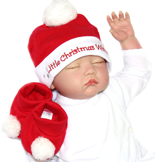 Baby Set 3 tlg Mütze Schuhe Jungen Mädchen Weihnachten Christmas