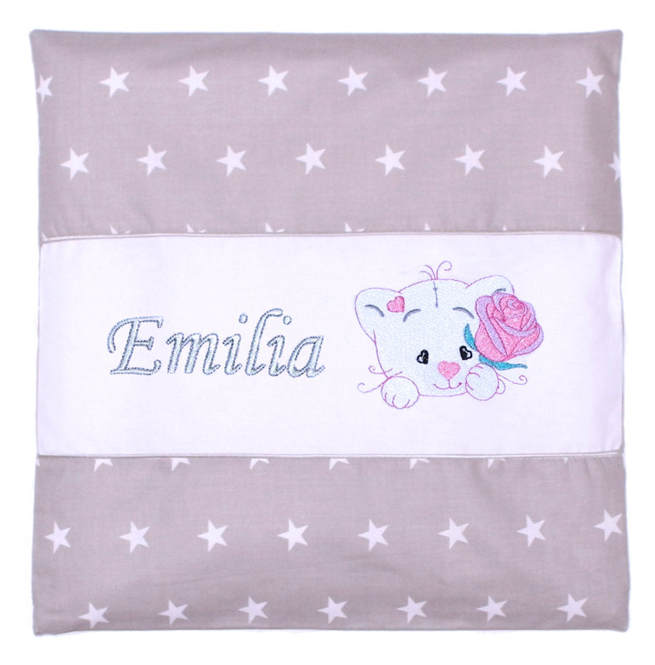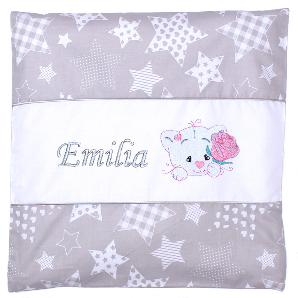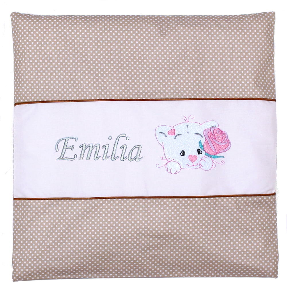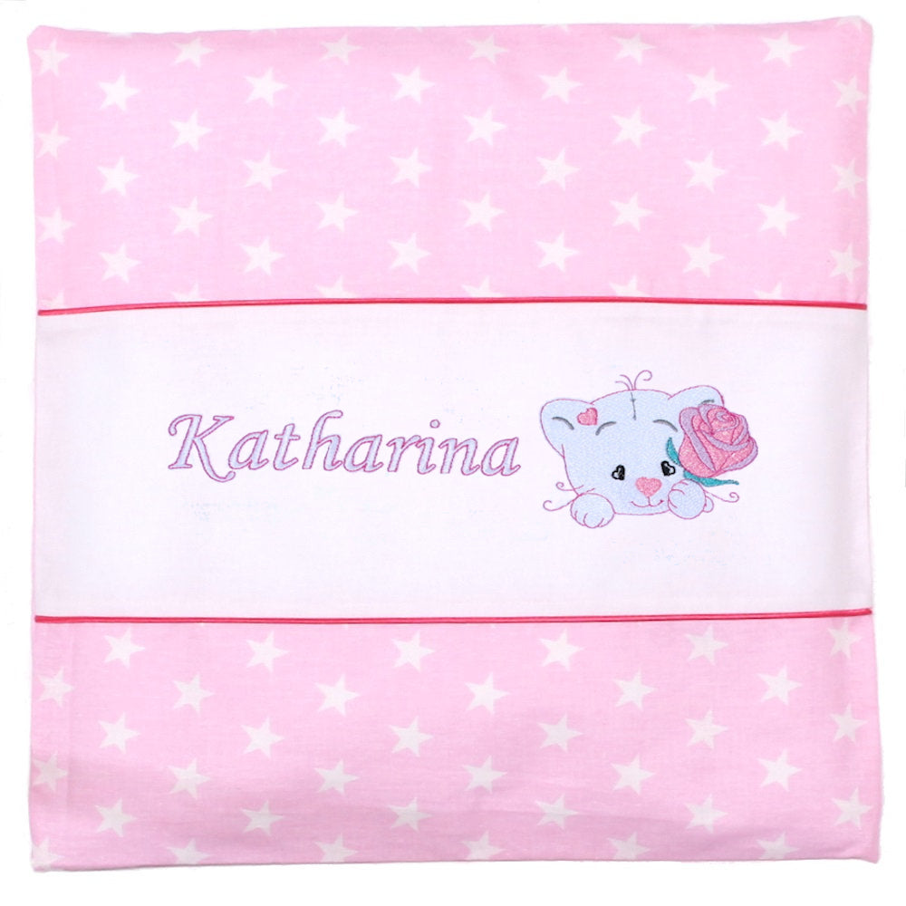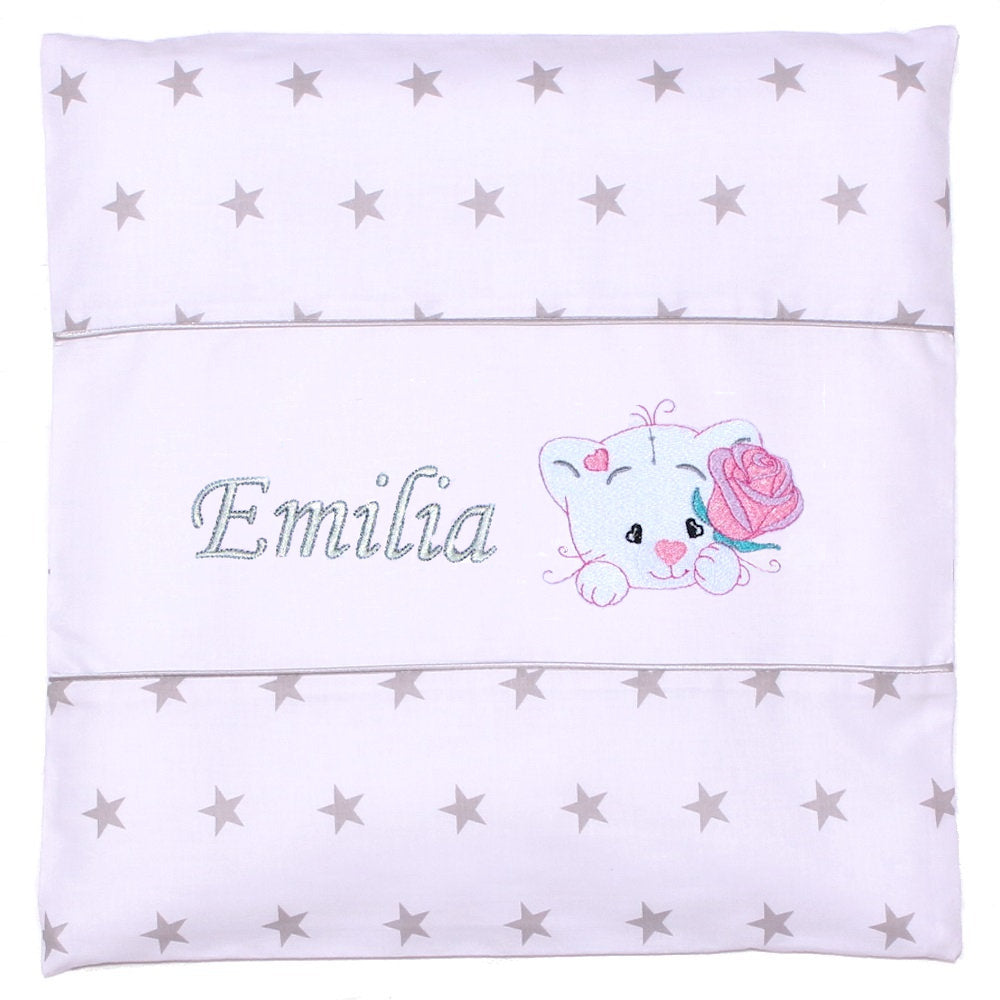 Kissen mit Stickerei und Namen - V2 - Katze mit Rose