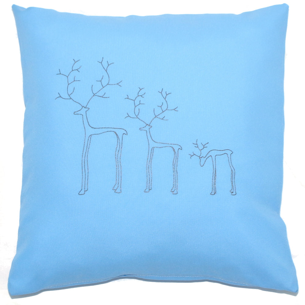 Der Kissenbezug ist aus 100% Polyester. Das Motiv ist von uns gestickt.